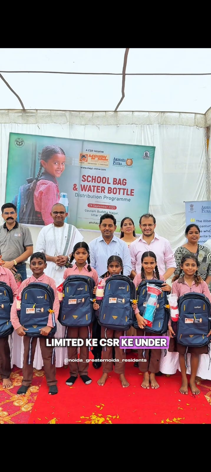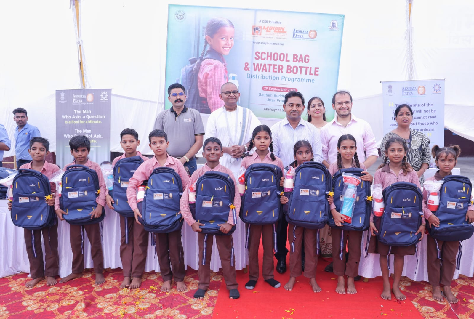Noida, India – In a heartfelt CSR initiative to promote education and well-being among underprivileged children, Anshul Garg Mohan - MD of Mohan Electro Casting Private Limited (MEPL) with Chief Guest Shri Ashutosh Gupta - Sub-Divisional Magistrate of Sadar At Noida (Gautam Buddha Nagar), in association with NGO "The Akshaya Patra Foundation", have successfully distributed school bags and water bottles to 500 G.B.Nagar Government School Students.