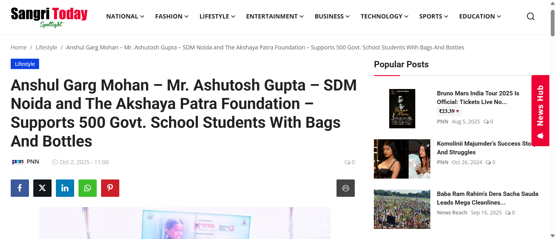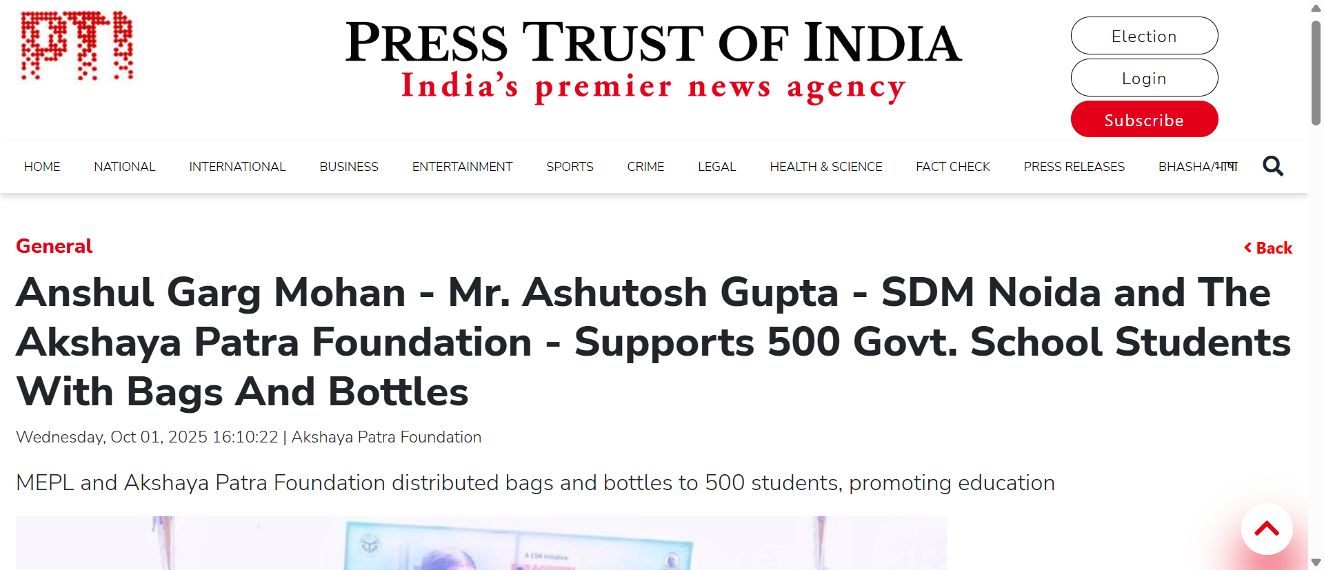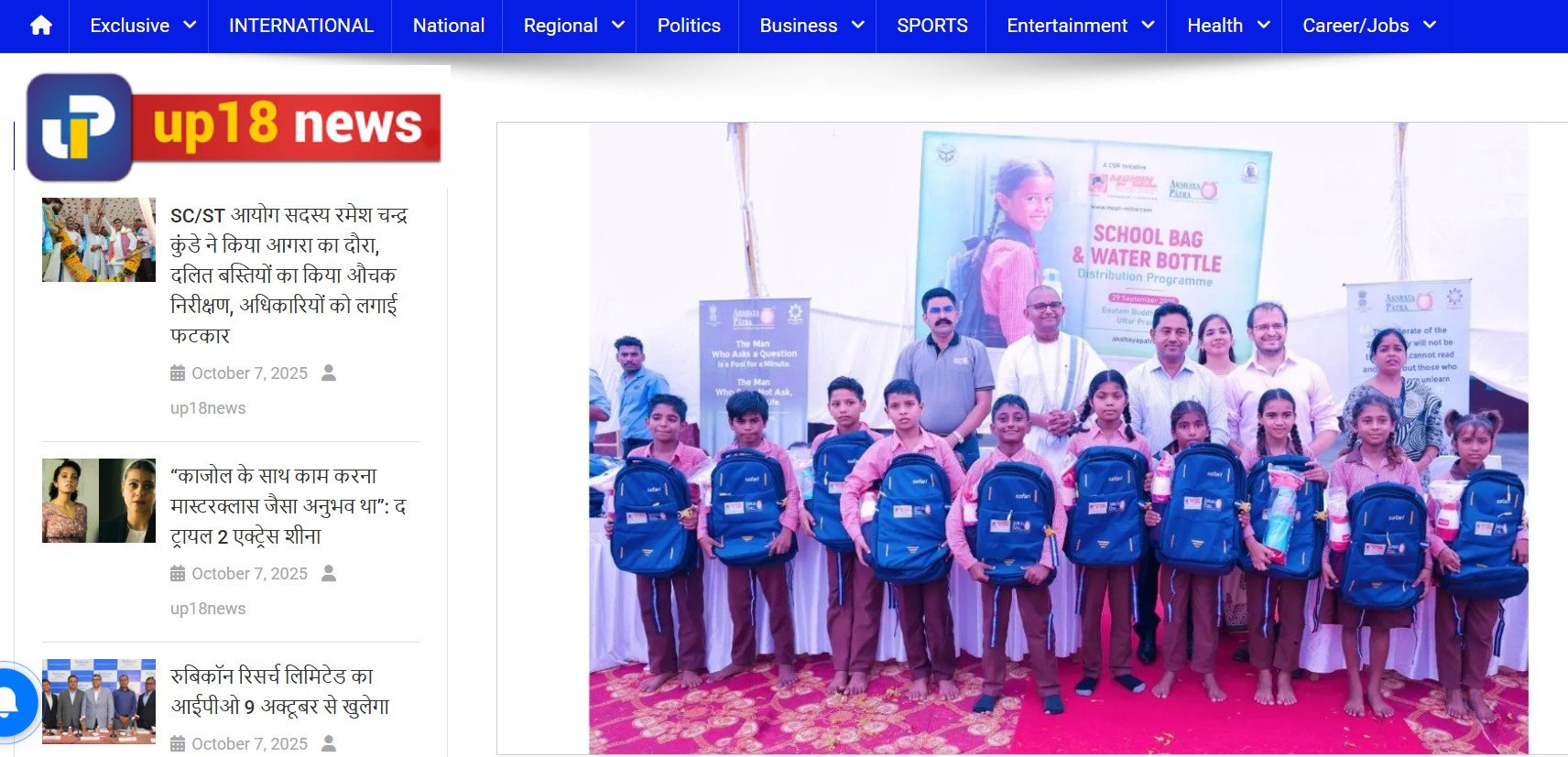 Anshul Garg Mohan – Mr. Ashutosh Gupta – SDM Noida and The Akshaya Patra Foundation – Supports 500 Govt. School Students With Bags And Bottles